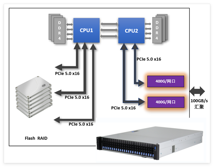 极致性能巅峰:100GB/s(800Gbps)超高带宽全闪存存储服务器