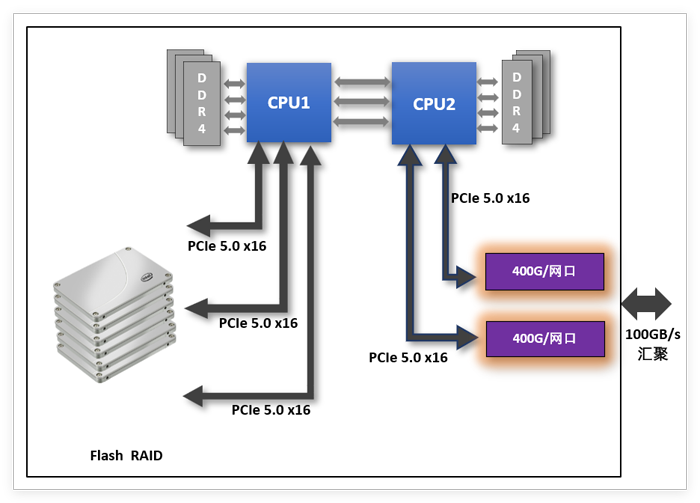 • 极致性能巅峰:100GB/s(800Gbps)超高带宽全闪存存储服务器